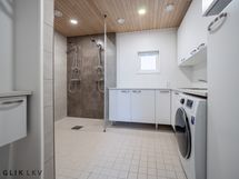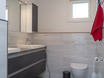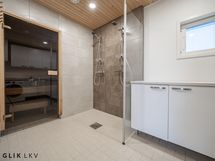- Varusteet: Lattialämmitys, Peili, Kiinteät valaisimet, Kylpyhuonekaapistot. Yläkerta: pesuhuone totetettu ilman suihkua. Wc-istuin. Alakerta erillinen wc.