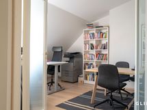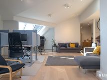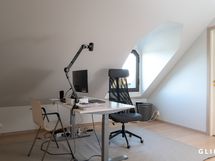 Huoneisto on nyt toimistokäytössä mutta se on suunniteltu kodiksi, toimii mainiosti kummassakin tarkoituksessa tai vaikka näiden yhdistelmänä, työhuoneeseen on myös erillinen ovi rappukäytävästä.
