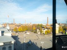 Maisema yli keskustan kattojen on uniikki, Keskustori, Hämeensilta ja Hämeenkatu kaikki suoraan alapuolella ja silti, ylimmän kerroksen täydellinen rauha.