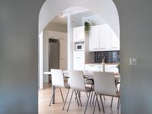 Liesi: keraaminen, erillisuuni. Kylmäsäilytys: jää/viileäkaappi. Varustus: liesituuletin, mikroaaltouuni, astianpesukone.