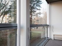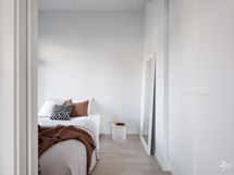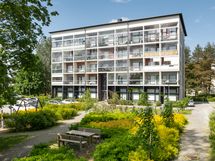 Kodikas ja valoisa kaksio talon päätykulmassa.