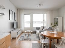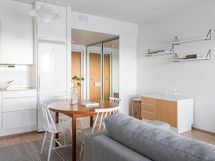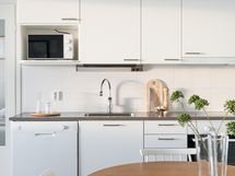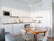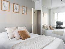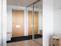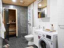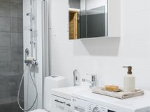 - Varustus: suihkuseinä, pesukoneliitäntä, lattialämmitys, wc-istuin, suihku, peilikaappi, kiinteät valaisimet, kylpyhuonekaapisto.