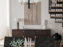 Koko huoneiston persoonallinen sisustus on suunniteltu huolellisesti, siinä yhdistyy modernit sekä klassiset elementit.