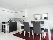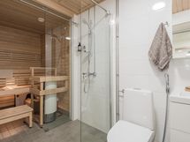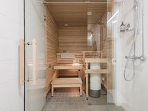 Kodin sydän on suuri olohuone ja keittiö, jotka muodostavat yhtenäisen ja viihtyisän kokonaisuuden rentoon oleskeluun ja yhdessäoloon. Arjen luksusta tarjoaa oma sauna, jonka lempeissä löylyissä on mukava rentoutua.