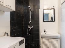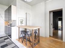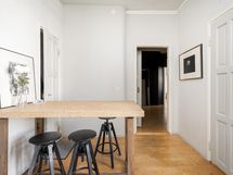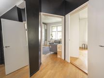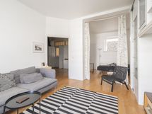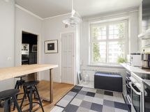 Asunnossa on tilavat huoneet, joissa on kauniit puulattiat ja korkeat huoneet, jotka luovat avaran ja valoisan tunnelman. Keittiössä on runsaasti kaappitilaa ja tilaa ruokapöydälle. Olohuoneessa on runsaasti tilaa oleskelulle, ja alkovi tuo lisätilaa esimerkiksi työhuoneelle tai vierashuoneelle. Kylpyhuone ja erillinen wc tuovat käytännöllisyyttä asumiseen. Asunnossa on myös kellari- ja vinttikomero, jotka tarjoavat runsaasti säilytystilaa.