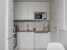 Tässä 2018 rakennetun ylimmän kerroksen 33,5 m2 huoneisto on suunniteltu tehokkaasti. Asunto käsittää kaksi huonetta sekä keittiötilan, jotka yhdessä muodostavat harmonisen kokonaisuuden. Vaaleat pintamateriaalit ja ikkunat tekevät asunnosta valoisan ja ilmavan. Hyvä varustelu takaa asumismukavuuden ja pitkäikäisyyden. Erityisen viehättäväksi asunnon tekee lasitettu parveke, joka on kuin lisähuone kesäisin – täydellinen paikka nauttia aamukahvista tai ilta-auringosta.