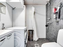 - Suihku, pesukoneliitäntä, allaskaappi, pyyppikaappi