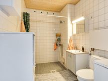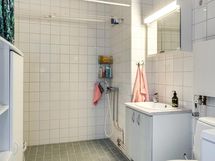 - Suihku, peilikaappi, pesukoneliitäntä, allaskaappi, patteri. Paneelikatto