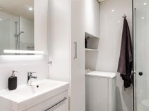 - Suihku/suihkukaappi, pesukoneliitäntä, kiinteät valaisimet