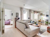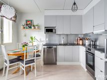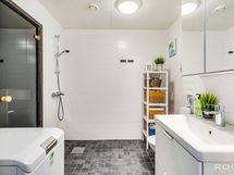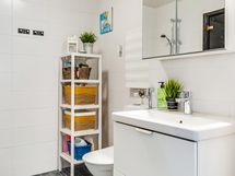 - Varustus: pesukoneliitäntä, wc-istuin, suihku, peilikaappi, kiinteät valaisimet, kylpyhuonekaapisto.