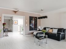 Lähdetään liikkeelle asunnosta. Kahdessa tasossa oleva koti on laajasti saneerattu viime vuosien aikana. Asunnon yläkerta on remontoitu käytännössä täysin ja sinne on asennettu muun muassa vesikiertoinen lattialämmitys. Kaikki yläkerran tilat ovat tyylikkäitä ja remontti on toteutettu laadukkaasti. Alakerrassa on valtavasti säilytystilaa sekä asunnon saunaosasto ja kaksi isoa huonetta. Lämmitysmuotona tässä asunnossa on maalämpö. Asunnon edessä on myös autotalli.