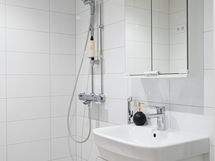 - Varustus: suihkuseinä, pesukoneliitäntä, wc-istuin, suihku, kiinteät valaisimet.