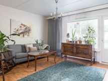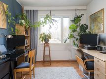 - Metsäinen näkymä parvekkeelta, olohuoneesta ja toisesta makuuhuoneesta. Keittiön ja toisen makuuhuoneen ikkunat sisäpihalle pohjoiseen.
