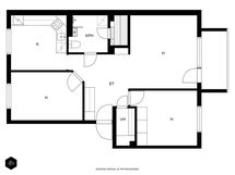 Yhtiöjärjestyksen mukaan huoneisto käsittää: 3 h + k
