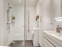 - Seinämallin wc, suihku, suihkuseinät, valopeili, pesukoneliitäntä, kph-kaapistoa, mukavuus lattialämmitys(huoneiston sähköstä)