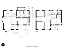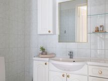 - Pesutilojen kuvaus: Lattia ja seinät laatoitettu, kaksi suihkua, pesuallas, hana. Erillisen WC:n kuvaus: Alakerran wc: lattia ja seinät laatoitettu, bidee-suihku, allas, allaskaapisto, peili, lattiakaivo.