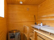 - Kuvaus: Seinät ja katto paneloitu, laattalattia, AinaValmis -kiuas.