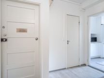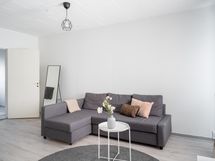 Keittiö: Laminaattilattia, seinät maalattu. Olohuone: Laminaattilattia, seinät maalattu. Makuuhuone : Laminaattilattia, seinät maalattu. Kylpyhuone: Muovimattolattia, seinät maalattu.