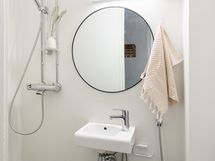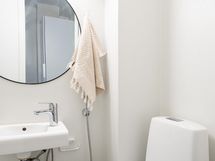 Kylpyhuoneessa : WC, suihku, peili ja kiinteät valaisimet.