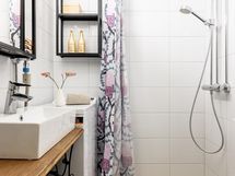- Kylpyhuone, suihku, peilikaappi, pesukoneliitäntä, kiinteät valaisimet.