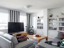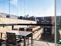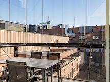 Tämä koti sijaitsee nykyaikaisessa yhtiössä, jossa mukavuudet on viety uudelle tasolle – lasten oma leikkialue löytyy talon katolta! Siellä perheen pienimmät pääsevät leikkimään turvallisesti aivan kaupungin ytimessä, taivaan alla.