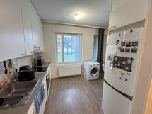 Paljon kaappitilaa, Puutasot, Astianpesukone, Keraaminen liesi, Liesituuletin, Jää-pakastinkaappi