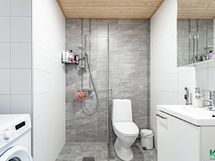 - Kylpyhuone, suihku, peilikaappi, lattialämmitys, kylpyhuonekaapisto, kiinteät valaisimet