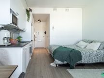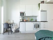 - Jääkaappi/pakastin, astianpesukone, kaapistot, keraaminen liesi, liesikupu/-tuuletin