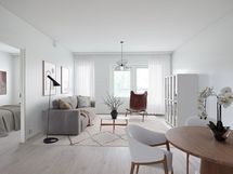 ENSIMMÄISEN KUUKAUDEN AJALTA VASTIKE 0 €! Tämä saunallinen kaksio tarjoaa avarat ja valoisat tilat, joissa yhdistyvät mukavuus ja toimivuus. Makuuhuoneessa on tilava vaatehuone, joka tuo runsaasti säilytystilaa. Keittiö, ruokailutila ja olohuone muodostavat yhtenäisen tilan, joka luo erinomaiset puitteet arjen askareille ja yhdessäololle. Tämä koti on täydellinen valinta, jos arvostat tilaa, käytännöllisyyttä ja omaa saunaa. Asunnon sisäkuvat ovat 2. kerroksen asunnosta A2.