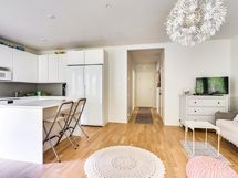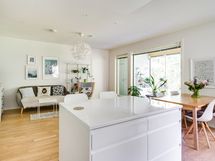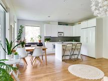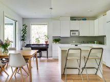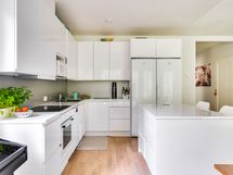 - Kalusteuuni, keraaminen liesitaso, astianpesukone, jääkaappi, pakastinkaappi, saareke.