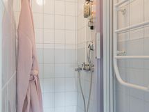 - Sauna, sähkökiuas (uusittu 2021), kylpyhuone, erillinen wc (pytty uusittu 2022), suihku, suihkuseinä (laatoitettu), peilit, kaapit ja allaskaappi (wc:ssä), pesukoneliitäntä (kylpyhuoneessa), lattialämmitys (kylpyhuoneessa ja saunassa), kiinteät valaisimet.