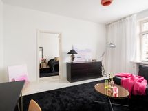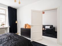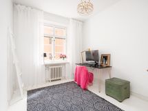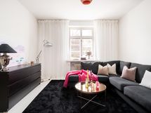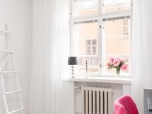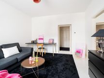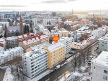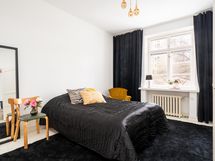 - Valoisa läpitalon huoneisto. Olohuone ja makuuhuone (1): luoteisnäkymä kadun suuntaan. Keittiö ja makuuhuone (2): suojainen kaunis sisäpihanäkymä.