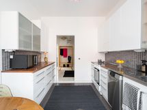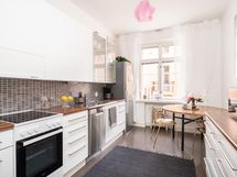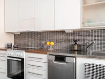 - Kaunis keittiö on kodin sydän. Keittiöstä avautuu idyllinen maisema suojaisalle sisäpihalle. Keittiössä on rosterinen jääkaappipakastin (uusittu 2023), keraaminen liesi, liesituuletin (aktiivihiilisuodatin) ja astianpesukone (45 cm, uusittu 2024).