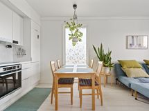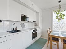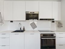 - Keittiön varusteet: Jääkaappipakastin, uuni, liesikupu, liesi ja astianpesukone. Liesi: Induktioliesi.