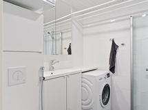 - Pesutilojen varusteet: WC-istuin, suihku, pesukoneliitäntä, lattialämmitys, peilikaappi, pesuallas, allaskaappi ja bidee-suihku.