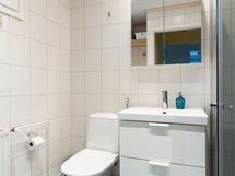 - Varusteet: Pesukoneliitäntä, Allaskaappi, Peilikaappi, WC, Suihku, Suihkukaappi