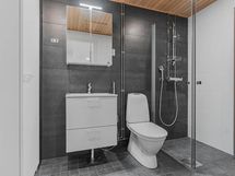 - Pesutilojen kuvaus: Pesuhuoneiden lattiat ja seinät on laatoitettu ja katot paneloitu. Osassa asunnoista on kodinhoitohuone tai erillinen wc, joiden lattiat on laatoitettu ja seinät laatoitettu osittain tai kokonaan erillisen suunnitelman mukaan. Osassa asunnoista on sauna, joiden lattiat on laatoitettu ja seinät paneloitu. Pesuhuoneissa on allas, allaskaluste laatikoilla, peilikaappi ja suihkuseinät. Erillis-wc:ssä on allas, allaskaluste laatikoilla sekä peili. Pesuhuoneessa on liitännät ja tilavaraukset pyykinpesukoneelle ja kondensoivalle kuivausrummulle.
