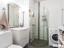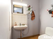 - Pesutilojen varusteet: WC-istuin, suihku, suihkuseinä, peili, pesukoneliitäntä ja pesuallas. Pesutilojen kuvaus: Pesuhuone remontoitu v.2015, vedeneristys, lattialaatat, seinälaatat uusittu. Erillisten WC:n lukumäärä: 1. Erillisen WC:n varusteet: WC-istuin, bidee-suihku, peilikaappi ja pesuallas.