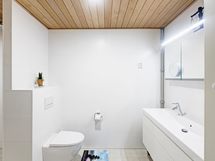 - Kylpyhuone, 2x sadesuihku, peilikaappi, pesukoneliitäntä, lattialämmitys, kiinteät valaisimet, kylpyhuonekaapisto, sähkösauna pilarikiukaalla