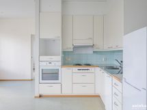 - tupakeittiö (tk): jääkaappi/pakastin (jenkkikaappi), , liesitaso, erillisuuni, liesituuletin, astianpesukone, kaapistot