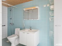 - suihku, pesukoneliitäntä, peilikaappi, kylpyhuonekaapisto