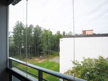 Lasitettu parveke länteen sisäpihalle