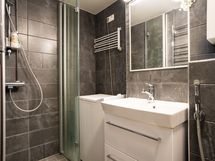 - Pesutilojen kuvaus: Laatoitettu sekä seinät että lattia