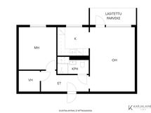 - Yhtiöjärjestyksen mukaan 2h+kk, 47,5 m2.