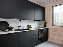 Modernit Puustelli-keittiöt on varustettu nykyaikaisilla ratkaisuilla ja laadukkailla kodinkoneilla. Kylpyhuoneiden materiaalit on valittu huolella, ja kokonaisuus huokuu tyylikkyyttä ja kestävyyttä.