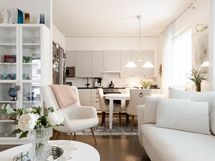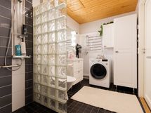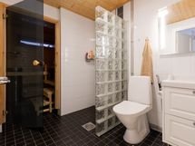 - Pesutilojen varusteet: WC-istuin, suihku, peili, allaskaappi, bidee-suihku, lattialämmitys, pesukoneliitäntä ja suihkuseinä. Erillisten WC:n lukumäärä: 1. Erillisen WC:n varusteet: WC-istuin, bidee-suihku, allaskaappi, peili ja lattialämmitys.