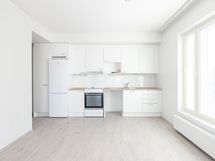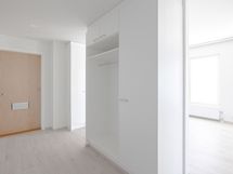 Tämän asunnon keittotila ja olohuone ovat yhtä avaraa tilaa, keittiöstä löytyy tilavaraus astianpesukoneelle sekä mikroaaltouunille. Säilytystilaa tuo päämakuuhuoneen yhteydessä oleva vaatehuone. Lasitettu parveke suuntaa länteen, ikkunat länteen ja etelään. Tälle asunnolle on varattavissa pysäköintipaikka. Asunto A21 (5.krs): asumisoikeusmaksu 40 020 € ja vastike 940 €/kk. Asuntoon on jatkuva haku.