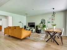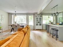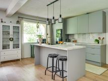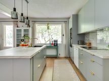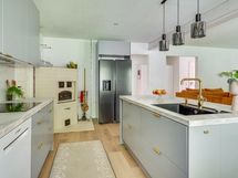 - Keittiö uusittu 2022. Kaapistot, erillisuuni- ja induktiotoiminen liesitaso, mikroaaltouuni, jääkaappi/pakastin (jääpala- ja kylmävesitoiminnot), allaspiste saarekkeessa. Keittiössä leivinuuni.