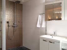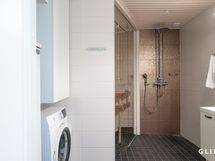 Varustus: suihkuseinä, pesukoneliitäntä, lattialämmitys, wc-istuin, suihku.