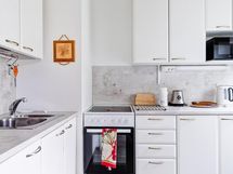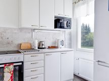 - Jääkaappi/pakastin, keraaminen liesi, kaapistot
